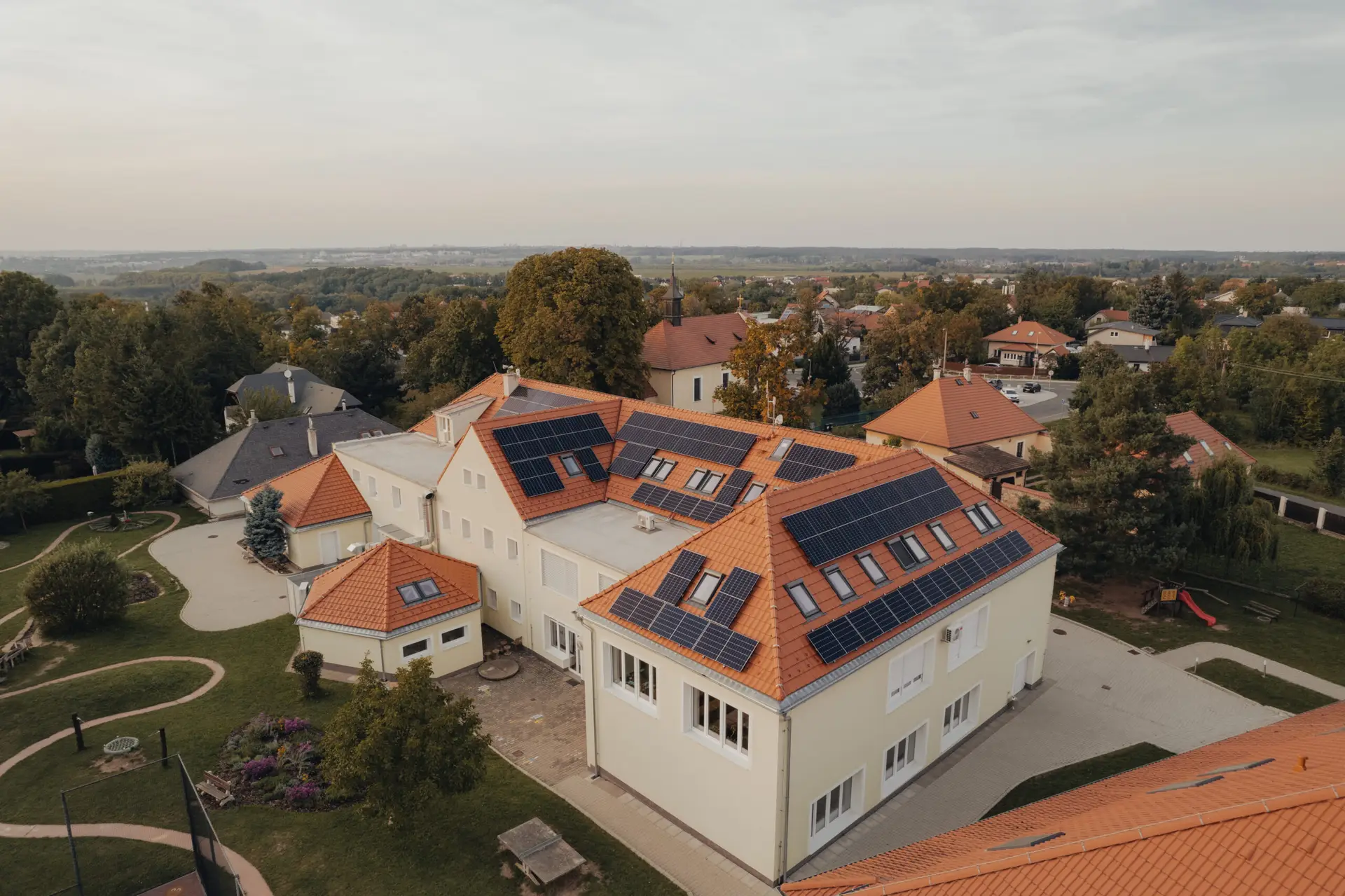 Instalace FV systému o výkonu 43 kWp s bateriovým systémem o kapacitě 34,8 kWh na střeše ZŠ a MŠ Koloděje.